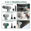 Product Selling Points:1. 100% brand new high-quality wireless car vacuum cleaner.2. Multifunctional design: Vacuuming/Blowing/Inflating.3. Suitable for cleaning cars, vacuuming, blowing dust, blowing balloons, and vacuum pumping household storage bags.4. Powerful three gears adjustment brushless motor for efficient cleaning: 1 Gear 60000PA / 2 Gear 120000PA / 3 Gear 200000PA.5. Can suck pet hair, dust, debris, and paper for car and home cleaning.6. Dual-purpose design: Can be used as a dust buster and an air dust blower.7. Intelligent AI variable frequency motor for optimized suction power.8. Dual duct design for effective and reasonable suction release.9. Comes with two useful filters (optional): Metal Filter for debris and HEPA Filter for sand and dust.10. Type-C fast charging for convenient and worry-free use.11. Made with high-quality ABS material.12. Compact and portable design.13. Comes with various nozzles and accessories for versatile cleaning.14. Noise level ≤ 60dB for quiet operation.15. Large dust collection capacity of 200ml.16. Operating temperature range from -20 ℃ to +50 ℃.17. Lightweight and easy to carry with a weight of just 0.44KG.18. Package includes a portable wireless vacuum cleaner, suction nozzle, brush nozzle, inflatable mouth, pump nozzle, floor brush, and Type-C USB charging cable.